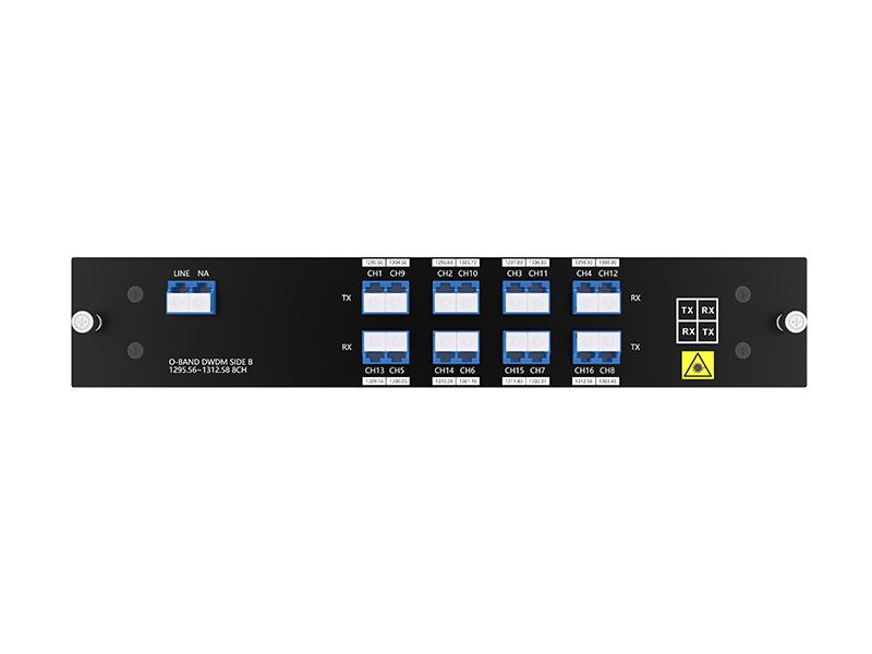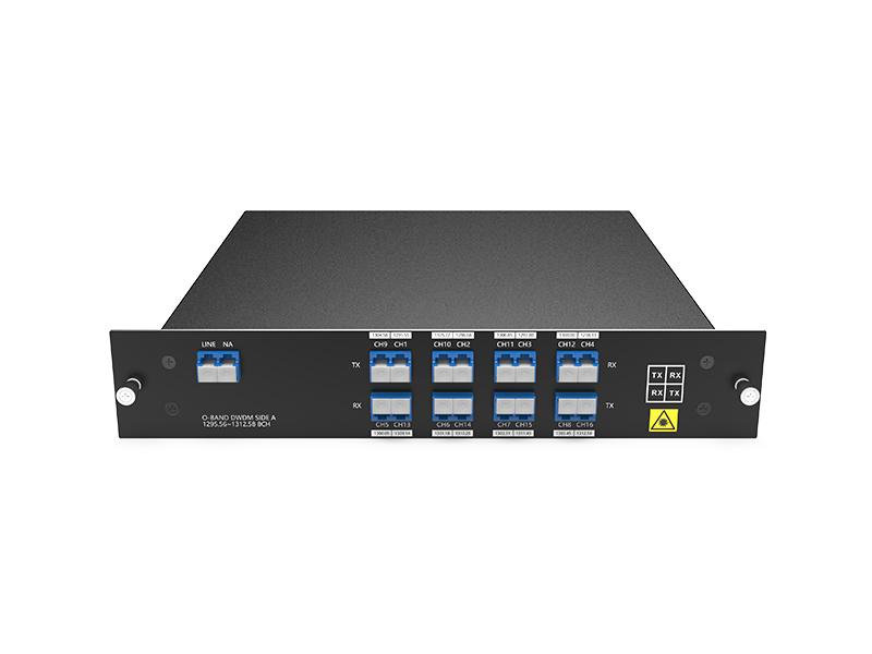 Одноволоконный 8-канальный (16 волн) DWDM-мультиплексор O-диапазона, разработанный компанией FIBERWDM, является полностью пассивным DWDM-устройством и поддерживает низкие вносимые потери (длины волн портов <4,8 дБ). Диапазон волн: 1295,56/1296,68/1297,80/1298,93/1300,05/1301,18/1302,31/1303,45/1304,58/1305,72/1306,85/1308,00/1309,14/1310,28/1311,43/1312,58 нм, поддерживает 8-канальную передачу по одному волокну.